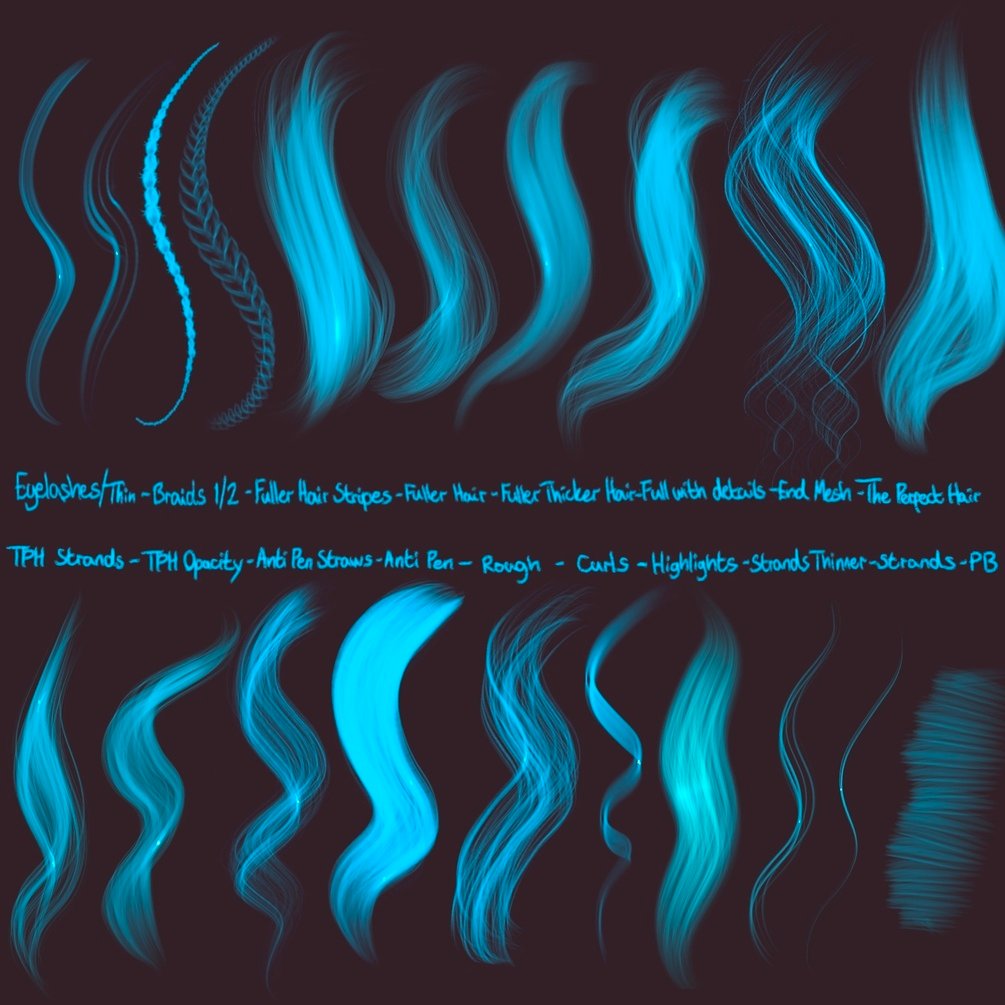 A complete pack of 20 Hair brushes for realistic hair texture, perfect for different hairstyles together with eyebrows and eyelashes. Brushes created to look like my own hair technique. The pack does also include a 4-step JPG files on how I draw hair.